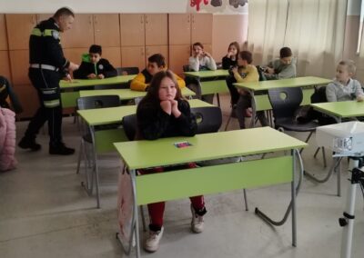 Предавање намењено ученицима 3. и 4. разреда одржао је саобраћајни полицијац полицијске станице у Ражњу, Слађан Петровић, који је ученицима на јасан и приступачан начин представио кључне теме из области безбедности деце у саобраћају. Ученици су имали прилику да науче како да се безбедно крећу као пешаци и бициклисти, како правилно да прелазе улицу и које опасности најчешће прете у саобраћају. Наглашена је и важност поштовања саобраћајних прописа, као и улога полиције у очувању јавне безбедности.